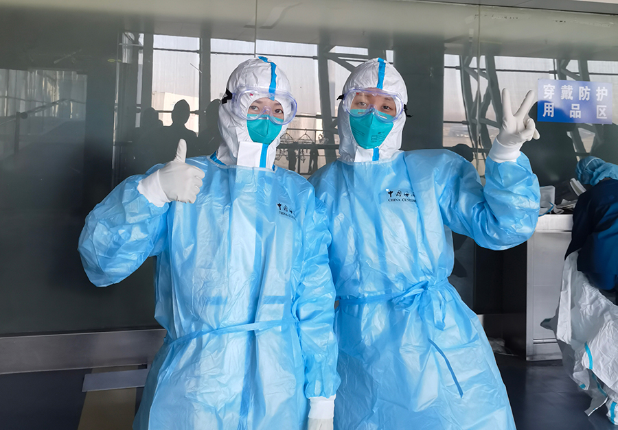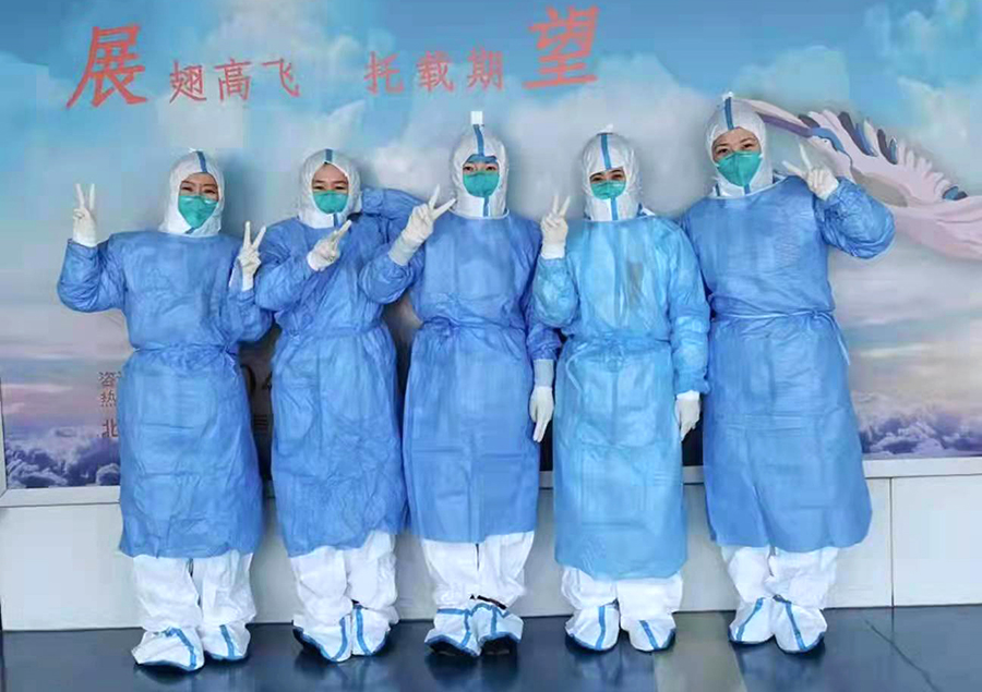 “护目镜、N95口罩在我们的额头、脸上和鼻梁上留下了深深的勒痕。可每当听到旅客离开前说的‘谢谢’‘你们辛苦啦’,当天的疲惫感便一扫而空。”——张新瑶