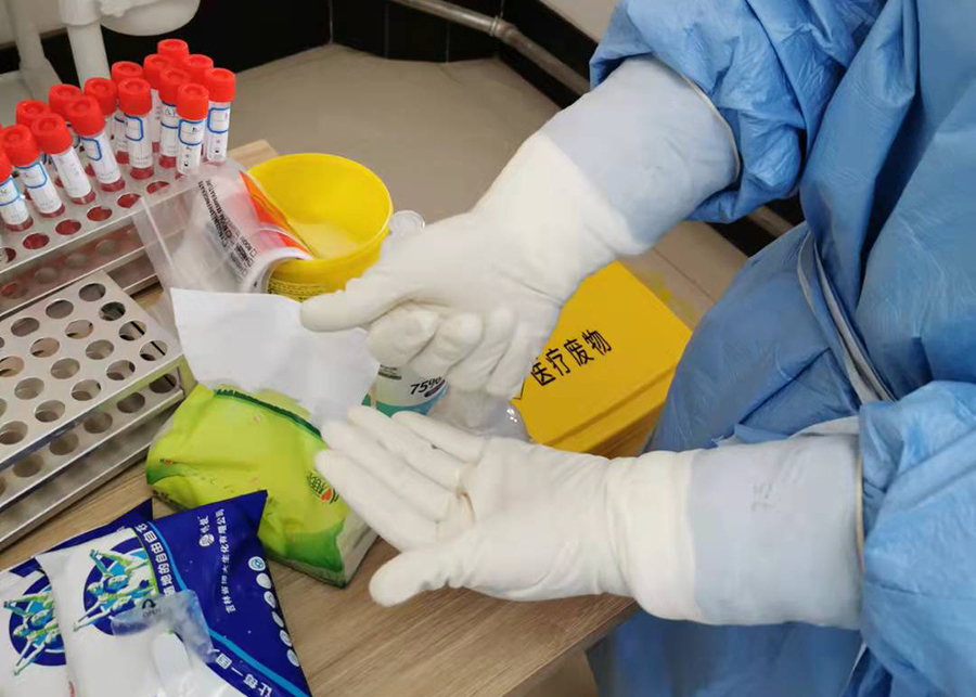 “采样工作结束后,领导和同事纷纷发来消息关心我。工作虽然辛苦,但有了这些关心和爱护,我更加坚定了抗疫的决心。” ——刘思彤