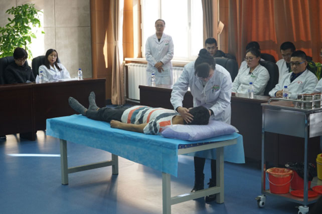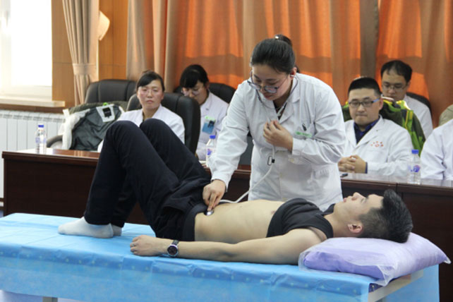 随后,5名优秀学员代表所有受训医生演示了头颈部检查、胸部检查、腹部检查、四肢检查等体格检查项目及徒手心肺复苏操作。