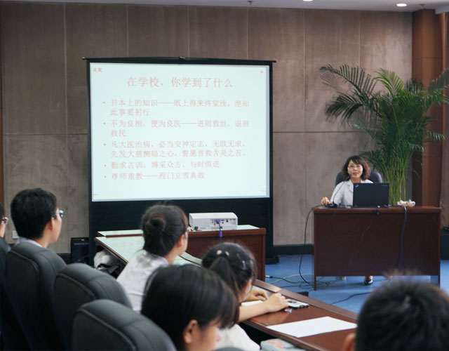 为帮助在校学生转变角色,熟悉医院工作及规章制度,培养良好的心理素质、职业道德和沟通技巧,成为合格医生,中文成人网 科教科于7月18日在总部13楼会议室对长春中医药大学实习生进行岗前培训。