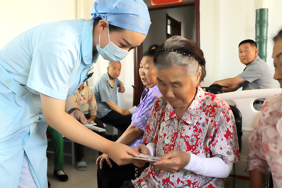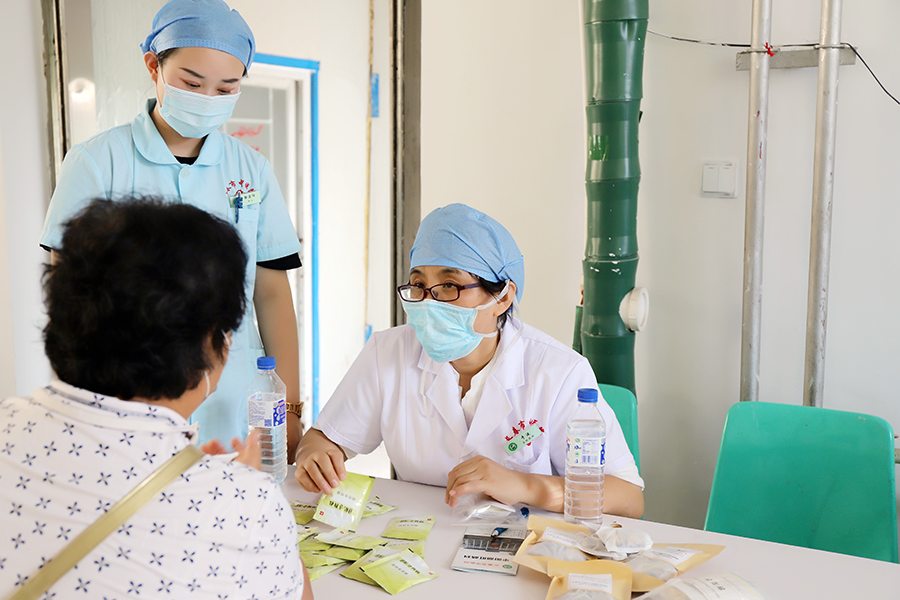 得知义诊的消息后,很多村民都来了,王大娘就是其中一位。她一进门左手边,是肛肠科义诊区,开门见山,“我便秘挺严重的,就吃青菜,四五天才便一次。”“您试试我们医院专门针对便秘患者研制的‘通便饮’,适用虚性便秘、腹胀、精神不振、食少纳呆的患者,一天一次,泡了当茶喝就行。”领了“通便饮”,王大娘来到骨伤科义诊区,她说左腿疼三四年了,吃的、喷的、抹的药都试过了,不管用。“大娘,从你的情况来看,这是滑膜炎,别着急,我告诉您咋办”……一次义诊,解决了王大娘多年便秘、腿疼的烦恼,她说自己70多岁了,去医院检查也不方便,这次义诊送到身边了,真好!