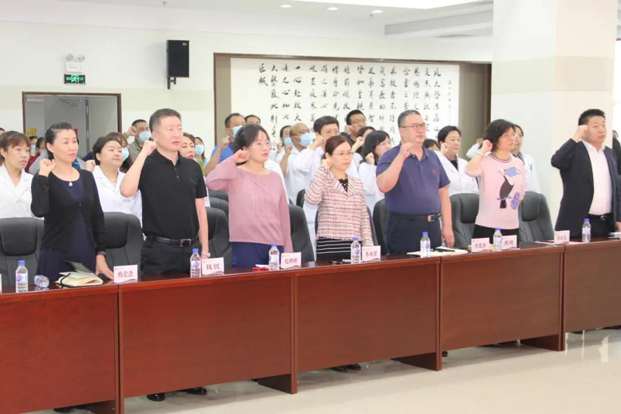 最后,在杨启光副院长带领下,全体人员高举右拳,庄严宣誓,他们用铿锵有力的声音表达了为祖国医药卫生事业发展和人民身心健康奋斗终生的决心。
