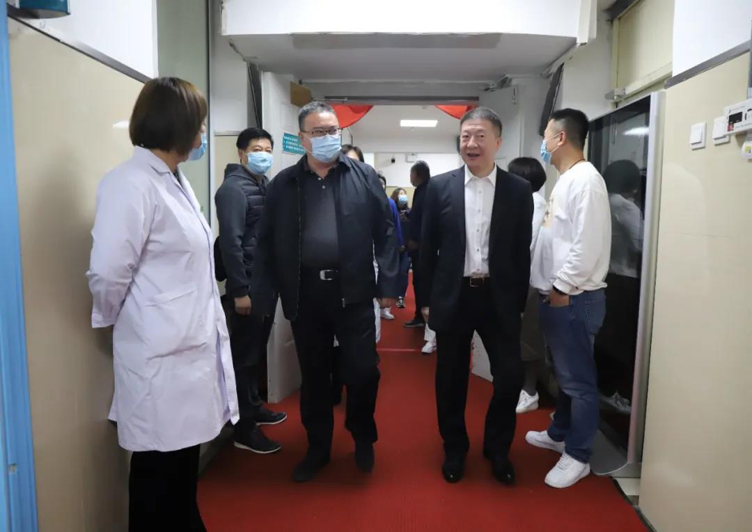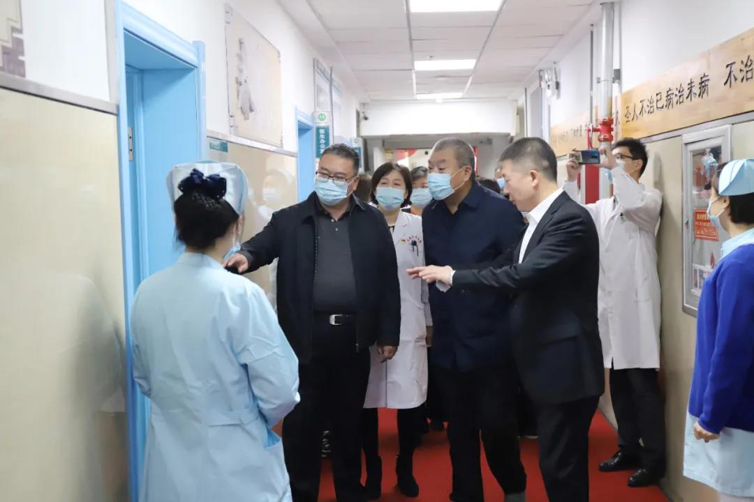 随后,孙良金院长、钱锐副院长、石贵军副院长等院领导参观了肺病科疗区病房、护理站、处置室等,对病房设施、疗区格局、护理服务、处置流程、疗区文化建设等方面给予指导,并对疗区应对疫情工作给出建设性建议并做出部署,在保证安全的前提下,为患者提供更好的治疗服务。