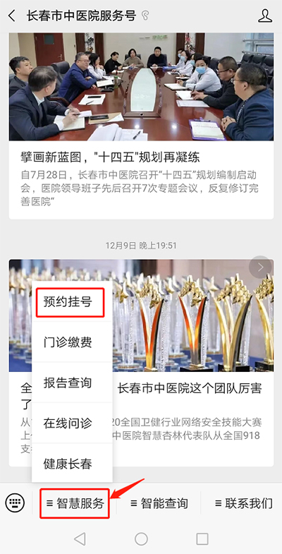 点击智慧服务-预约挂号