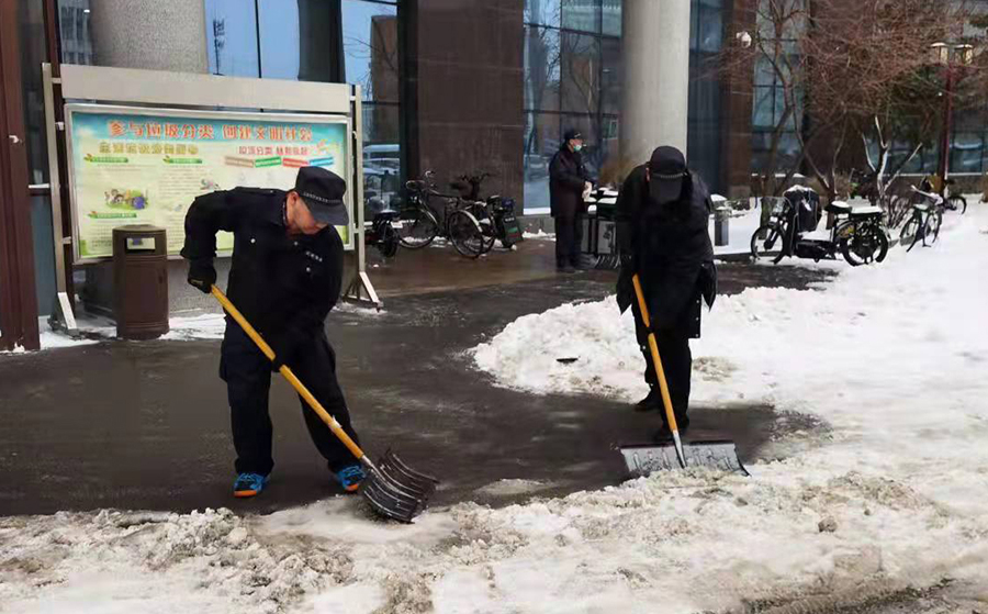 自院党委开展“讲政治、讲奉献、讲学习、讲正气 我为群众办实事”实践活动以来,全院职工讲付出、讲奉献、讲担当,虽然寒风凛冽,天气很冷,但他们干劲十足,早早来到单位开展扫雪活动。大家分工协作,用扫帚和铁锹,一点点地扫,一锨锨地铲,有的人手上磨起了泡,有的人脸上冻得通红,但是没有一个人有怨言,院子内一片热火朝天浴“雪”奋战的场面。经过职工们的努力,车行道和人行道所有积雪得以彻底清除,保障了医院内各条道路的畅通,排除了因冰雪带来的不便。