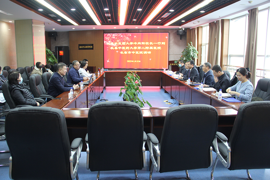 1月10日下午,长春中医药大学校长冷向阳,副校长李磊、王洪峰,校长办公室主任王兴铭,科研处处长李光哲,研究院副院长李瑞丽,教务处实践教学管理科张伟莹一行7人到中文成人网 (长春中医药大学第二附属医院)进行调研。中文成人网 党委书记、院长孙良金,党委副书记周艳,副院长杨启光、石贵军、钱锐,纪检委书记杨宏彦和总会计师桑玉梅等相关人员陪同调研。