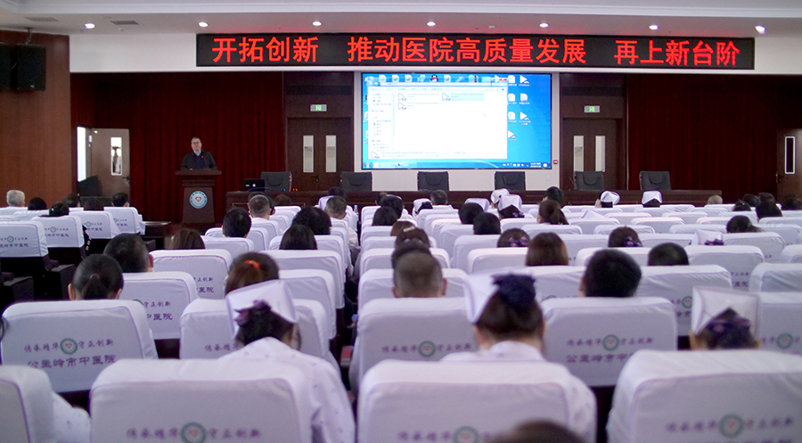 揭牌仪式结束后,孙良金院长又为公主岭市中医院的全体职工做了一次主题为“开拓创新 推动医院高质量发展 再上新台阶”的培训。在为大家播放了一段“狼性团队”宣传短片后,孙良金又不作保留地向公主岭市中医院的广大职工们传授了很多在中文成人网 快速发展过程中总结出来的经验和方法。