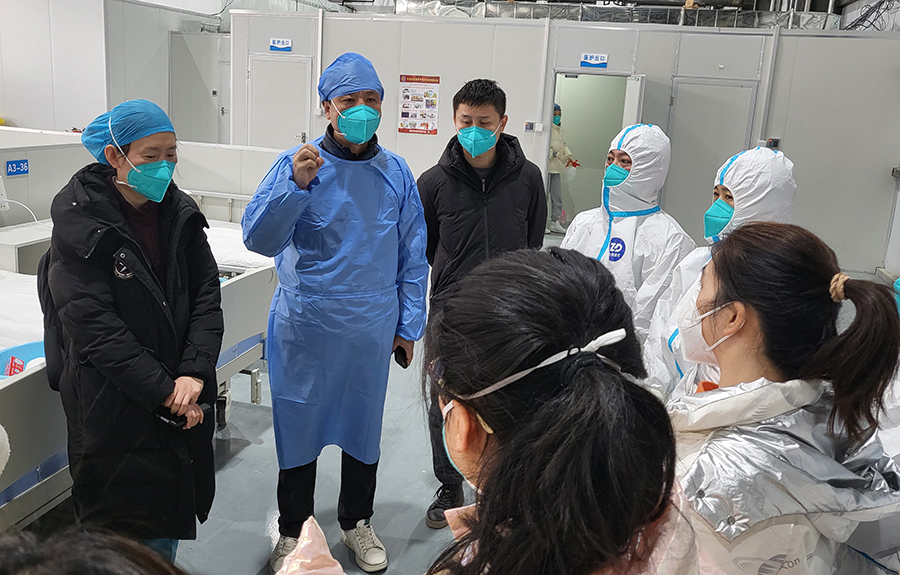 方舱医院内,杨启光副院长在部署工作时指出,在这关键时刻,全体医护人员要咬紧牙关、坚持到底,争分夺秒与时间赛跑、与病毒较量,齐心协力、克难求进。在做好患者救治工作的同时,也要做好自身防护,用行动织密、筑牢疫情“防控网”。
