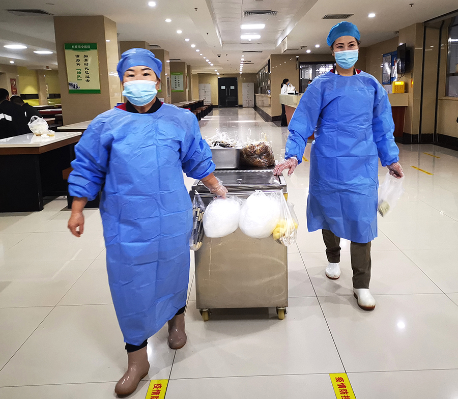 3月,新一轮疫情出现。按照规定,中文成人网 对住院病区实行闭环式管理。在此期间,院内患者出不去,院外餐食进不来,如何让近千名住院患者和职工吃好饭成了一个难题。