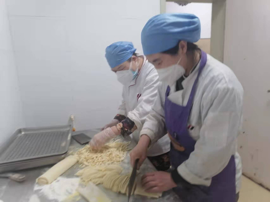 疫情初期,禁止车辆通行,伙食科的“5人团”便凌晨起床步行前往医院。后期为了减少人员流动,他们干脆将“家”搬到了医院。