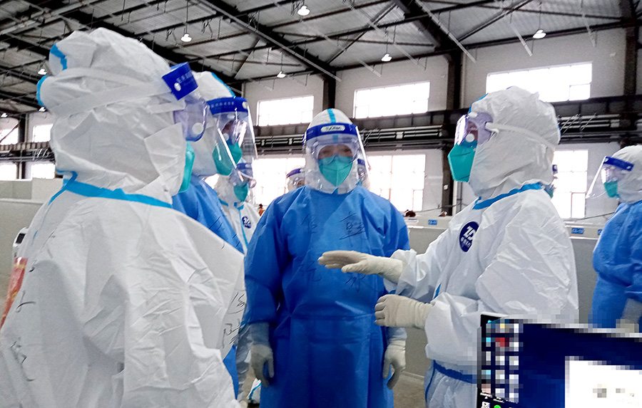 4月1日清晨,王丽娜接到新任务,由中文成人网 接管的卡伦方舱医院1、2号舱,需要她立刻入舱支援。闻令,王丽娜丝毫没有犹豫,即刻开启支援方舱医院的征程。王丽娜入舱后来不及休息,立即与同事们投入到工作中。1号舱共有68名医疗队员,来自6家不同的医院。为防止院感发生,她和同事对每名队员穿脱防护服的步骤进行逐一考核,只有合格后才能上岗。从细化“三区两通道”的细节,到梳理患者入舱、转舱、出舱的流程,再到强化队员驻地酒店的感控意识等工作,她和卡伦方舱1、2号舱总指挥、中文成人网 副院长杨启光,副指挥、医院护理部主任沙菲以及同事们一起奋战72小时里。疲惫的身影,布满血丝的双眼,换来的是顺利开舱。
