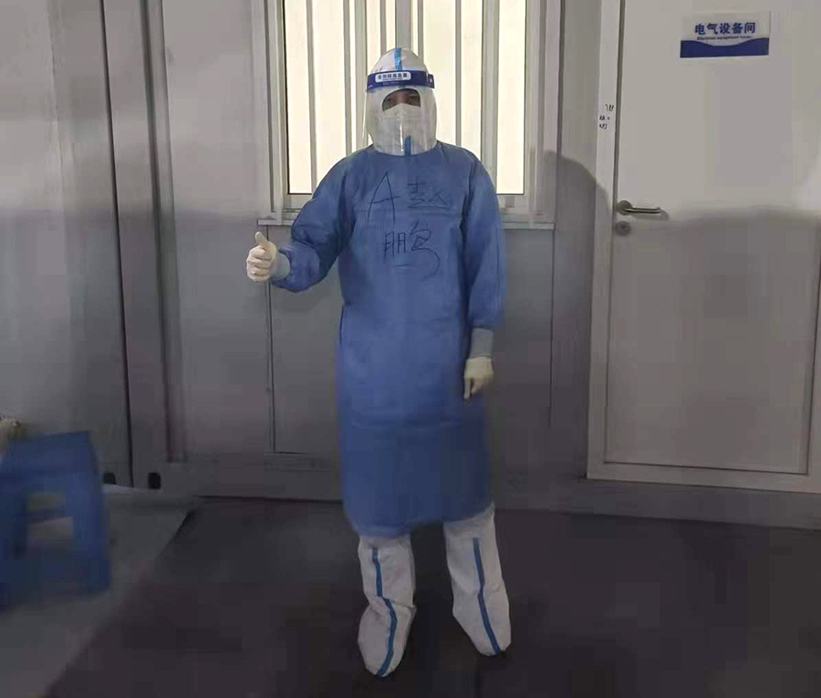 在隔离观察点期间,赵鹏和战友们同心共守,并肩作战。工作第一天,他穿戴上了隔离衣、护目镜、面屏、口罩和手套等防护“装备”,迅速投入到工作中。上岗第一天,他一天一夜没合眼。疲惫的身躯没能阻止他继续工作的热情。次日,又投入到了紧张的工作当中。