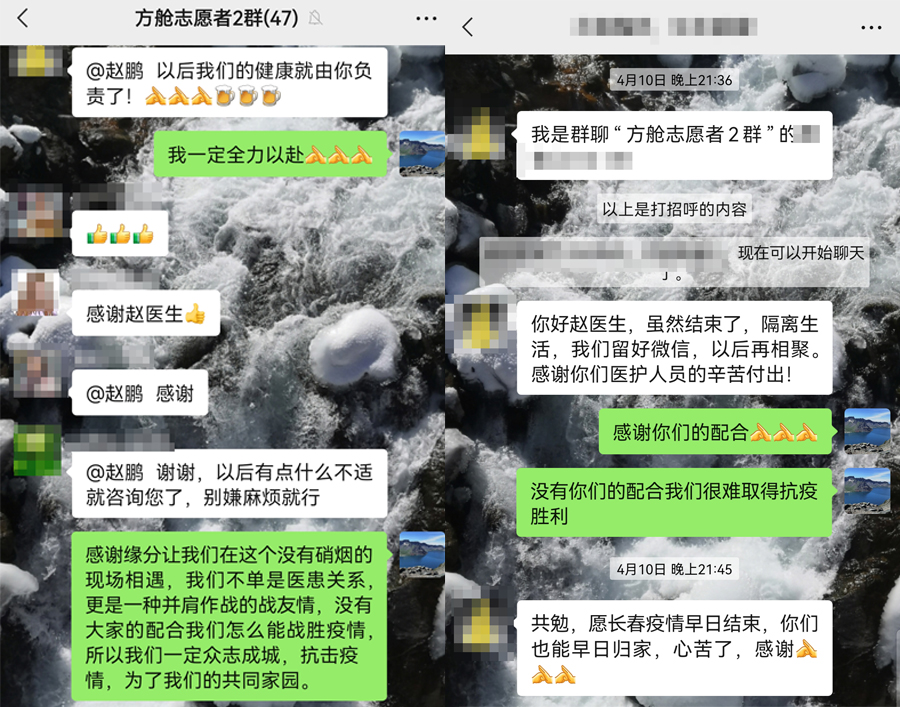 3月31日,赵鹏来到了卡伦方舱医院的1、2号舱。受舱内领导委托,他担任起了培训、库房管理、医疗救治工作。为了防止院感发生,赵鹏首先和几名队友当起了穿脱防护服的“培训师”。培训工作结束后,为了确保医护人员的医疗物资和患者的日常生活用品精准发放到位,他被派到库房担任管理员,经过一天一夜未眠的工作,摸索出了一套精简发放流程,受到了医护人员和患者的一致好评,库房工作得到正常运转。在了解到舱内患者对病情的恐慌、对几百人的集体生活不适应后,舱内总指挥、中文成人网 副院长杨启光指派赵鹏迅速组建舱内志愿者团队,形成医患共同抗疫的力量。由赵鹏和其他医护人员带领志愿者团队向大家普及新冠知识、解除大家恐慌的心理和照顾大家的日常起居生活。经过大家的共同努力,患者由烦躁不安,转变为一句句“你们医护人员辛苦了”。生命至上,患者至上,是医者永恒的追求,患者感受到了家庭般的温暖,谱写了医患齐心抗疫的新篇章!