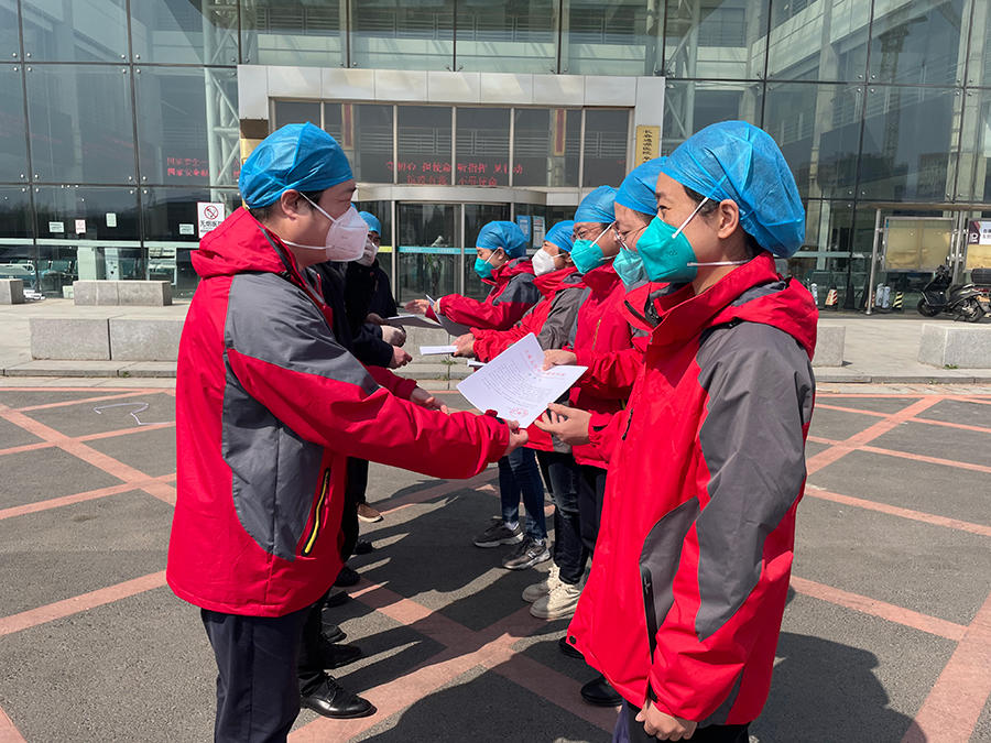 吉林大学中日联谊医院副院长顾锐、护理部主任裴艳玲、护士长屈冲代表该院对支援通源方舱医院的中医人表示衷心的感谢,对队员们的付出和坚守也给予了高度的肯定和赞扬!