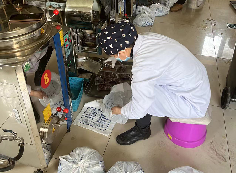 面对琐碎繁杂的工作,苏亚坤仍然亲力亲为,即使贴着膏药、手指因为切姜已经磨出了水泡,但她仍然为保供应、保药效,不辞辛劳地默默付出着。