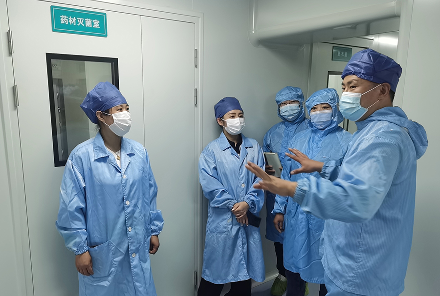 鲍建才向赵景文一行介绍了中文成人网 制剂室的基本情况、建设情况和发展规划。随后,大家更衣进入制剂室,分别了解了不同剂型的工艺流程。过程中,公主岭市中医院代表团成员每到一处都驻足观看,双方不断交流、探讨。