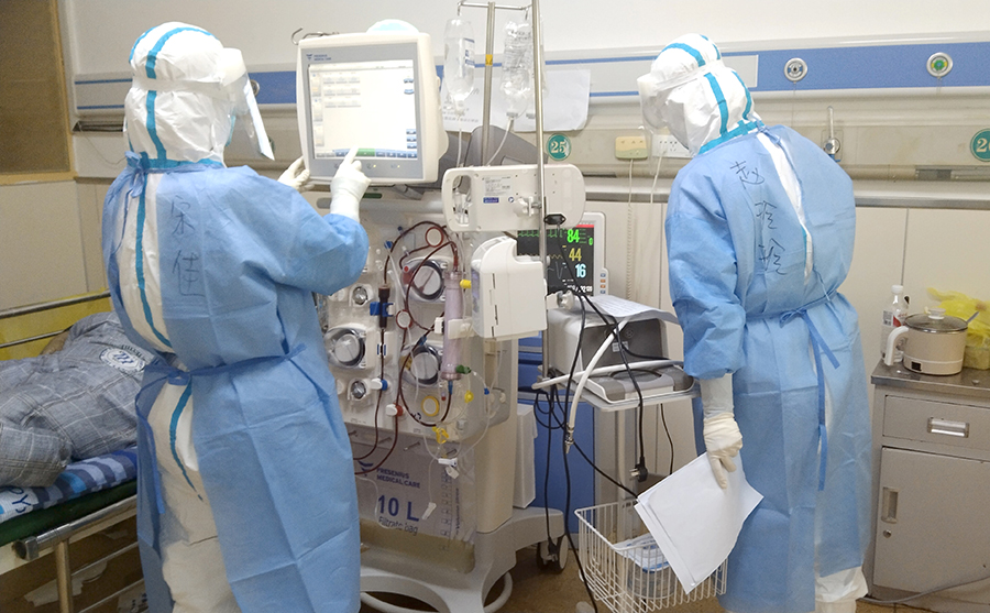 在长春市传染病医院重症医学科,患者急需进行血液透析治疗的危急时刻,中文成人网 东部血液透析科8名医护人员义无反顾连夜奔赴一线,用最短时间对设备进行调试,对患者病情进行详细了解,制定科学有效的救治方案。按照疫情防控要求,新冠阳性血液透析患者需要在隔离病房接受床旁血液净化治疗。当时患者比较多,原有的床旁血滤透析机不够用,朱树义决定启用备用设备,由于备用设备型号较新,还没有进行升级测试,朱树义就通过电话与工程师取得联系,在工程师的指导下对新设备进行升级测试,测试完成后立即投入到患者的治疗中,有效保障了急危重症患者的治疗。在困难面前,他们没有放弃、没有退缩。这一天,大家给患者治疗持续到次日凌晨才结束。
