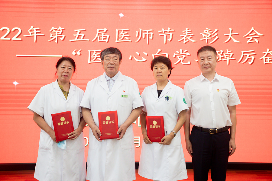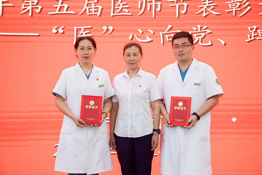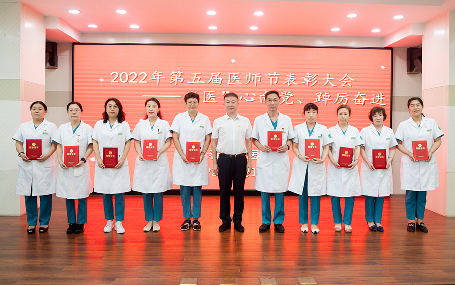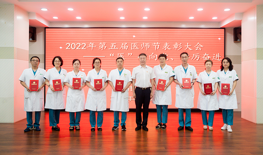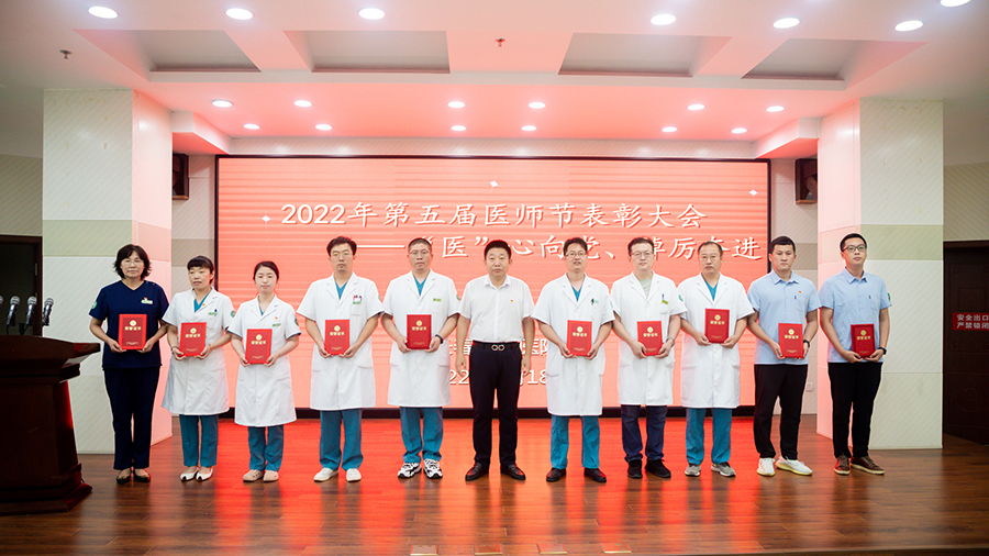 在第五个中国医师节来临之际,为表彰和激励在医疗战线上辛勤奉献的医务工作者,中文成人网 举行了第五届中国医师节表彰大会,对先进科室、优秀医师和抗疫人员进行了表彰。党委书记孙良金,党委副书记、院长石贵军,党委副书记周艳,副院长钱锐,纪检委书记杨宏彦和总会计师桑玉梅出席大会。