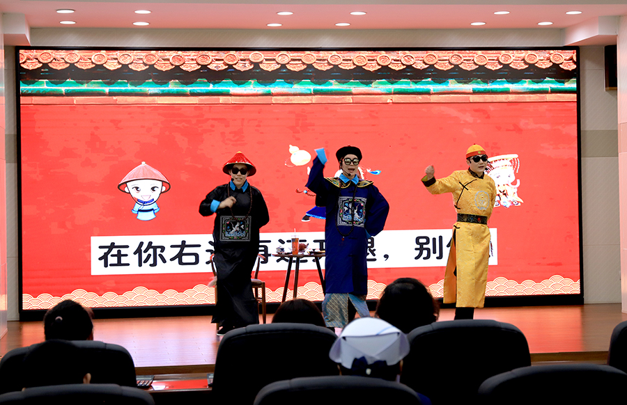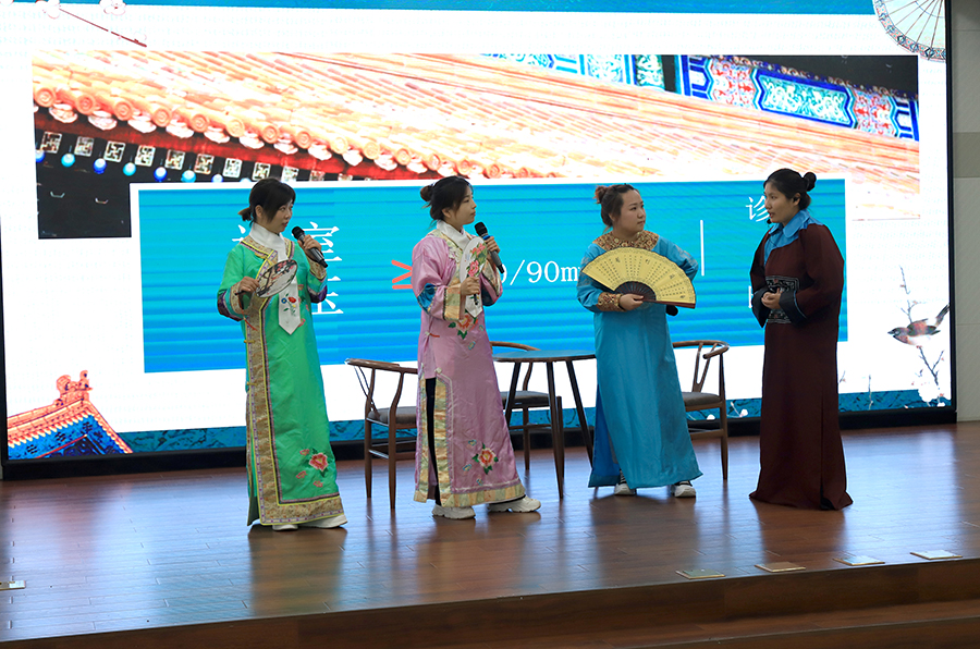 ▲财务科、科教科、保卫科共同为大家讲解了《数码痴呆症(宫廷篇)》的故事