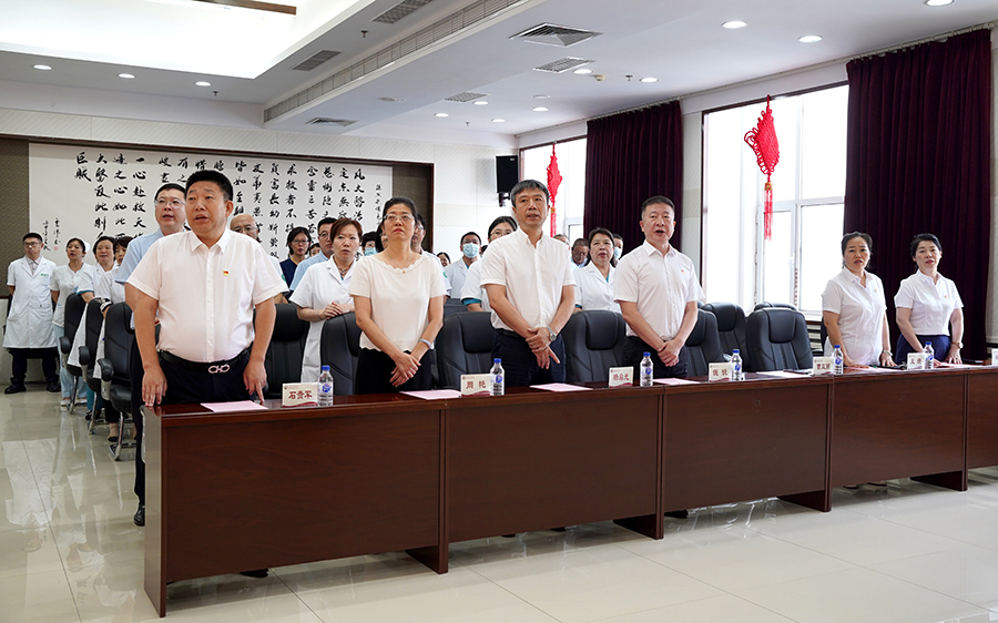 为庆祝第六个中国医师节,进一步团结凝聚广大医务工作者,在新时代新征程上不断奋进,8月18日下午,中文成人网 召开“勇担健康使命 铸就时代新功”医师节表彰及庆祝大会。中文成人网 党委副书记、院长石贵军,党委副书记周艳,副院长杨启光、钱锐、曹亚丽,纪检书记王妍,总会计师桑玉梅以及老专家代表和医师代表出席大会。