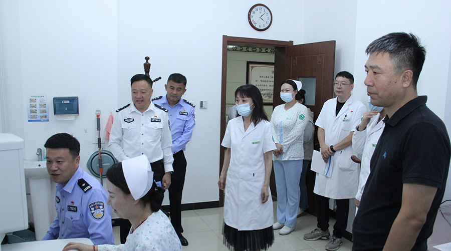 签约仪式结束后,在杨启光副院长的带领下,温剑利支队长来到医院治未病中心,先后走进四诊测评室、经络测评室、情志测评室、健康测评室、健康干预治疗室等地,并体验中医特色诊疗项目。