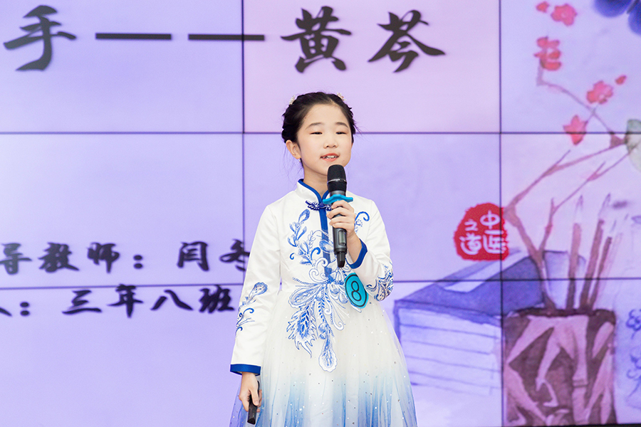 比赛中,三、四年级的孩子们以诵读、演讲的形式,分享了中医药的经典故事,讲述了中医药在疾病治疗、养生保健等方面的作用,以及自身与中医药结缘的故事。他们用生动的语言、真实的情感,向观众展示了自身风采和中医药文化的魅力。