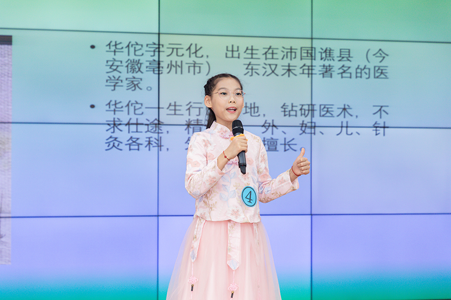 ▲4号选手刘承彤带来《中华神医——华佗》的典故