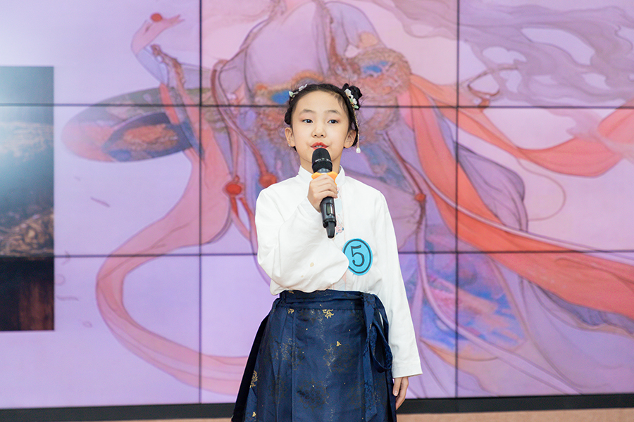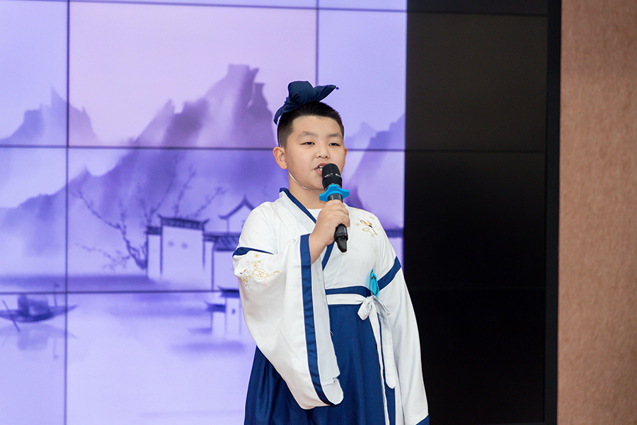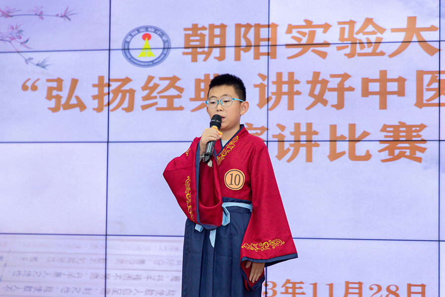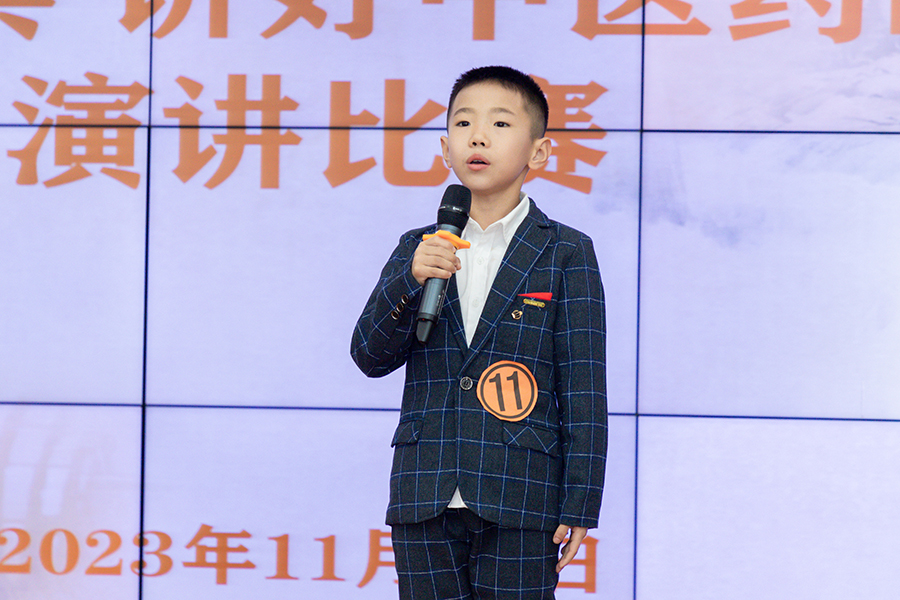 ▲11号选手郝奕澎分享了《传承中医药文化 争做新时代好少年》