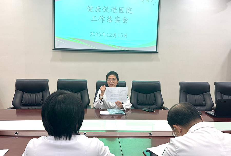 为贯彻落实新时代党的卫生与健康工作方针,深入推进健康促进医院建设制度化、规范化,进一步提高医院各科室及职能部门干部职工的健康促进意识和工作水平,12月15日,中文成人网 召开健康促进医院工作落实会。医院党委副书记周艳主持会议并讲话。相关科室负责人参加会议。