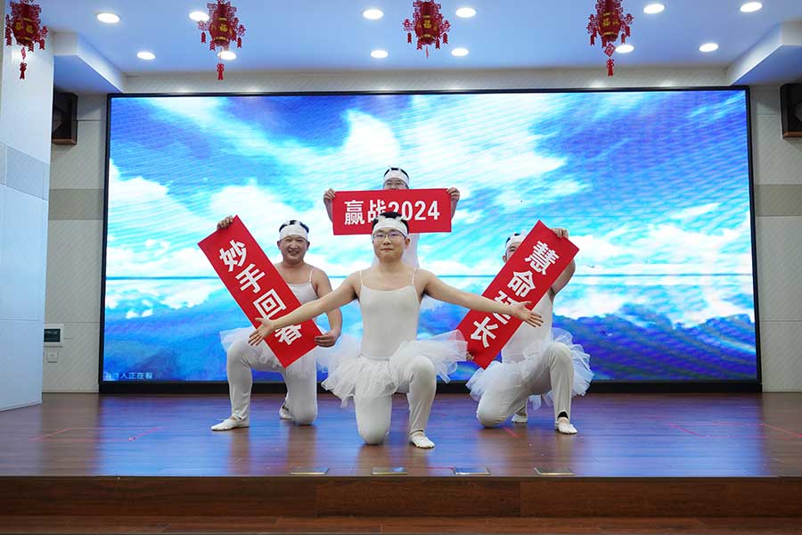 欢笑与惊喜总是相伴而来,文艺汇演不仅有精彩的演出节目,还有一系列有趣的游戏环节,“强势出圈”“蜻蜓点水”“龙腾盛世”等互动游戏将现场氛围一次次推向高潮。