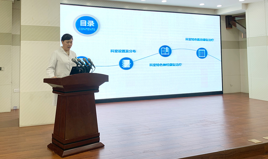 随后,在曹亚丽副院长的陪同下,姜哲三书记一行参加了中文成人网 每周例行的学术交流大讲堂。作为主讲人,顾树红主任向姜哲三书记等介绍了康复科在神经康复、肌肉康复上的特色疗法,以及“醒脑开窍”针法的应用情况。