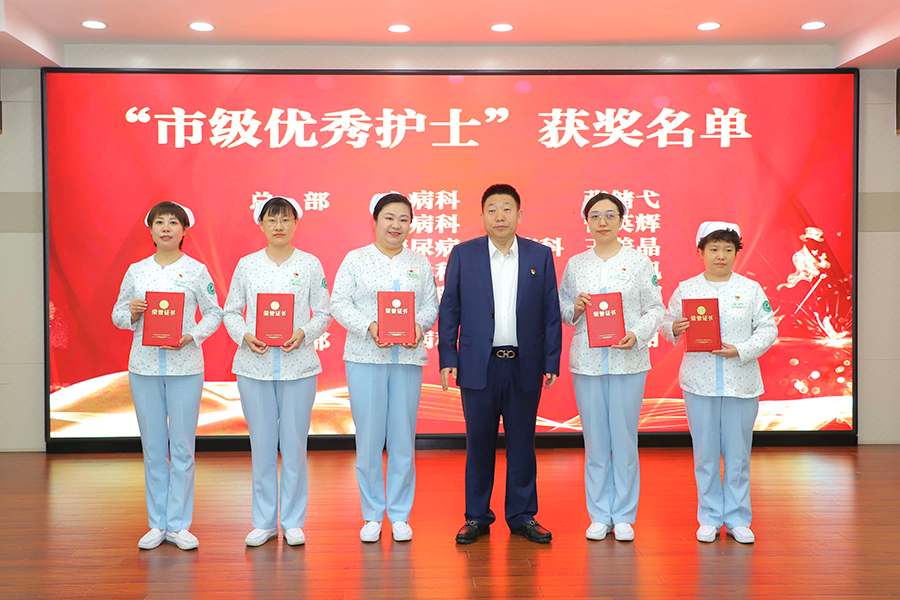 ▲石贵军书记为“市级优秀护士”获奖者颁奖