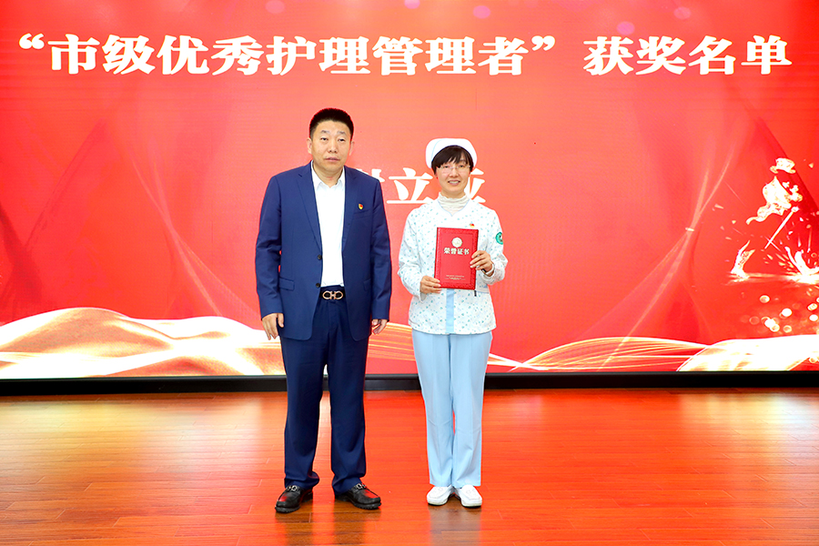 ▲石贵军书记为“市级优秀护理管理者”颁奖