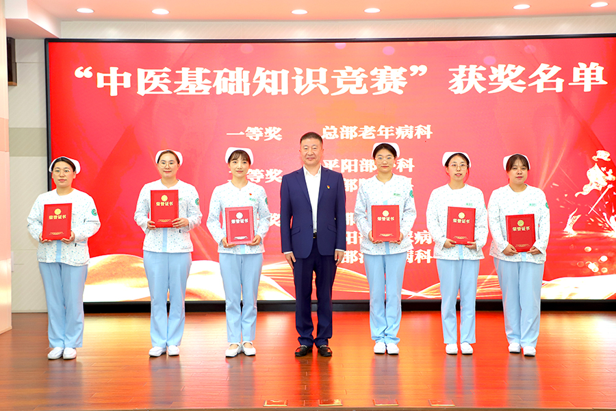 ▲杨启光副院长为“中医护理技能大赛”获奖科室颁奖