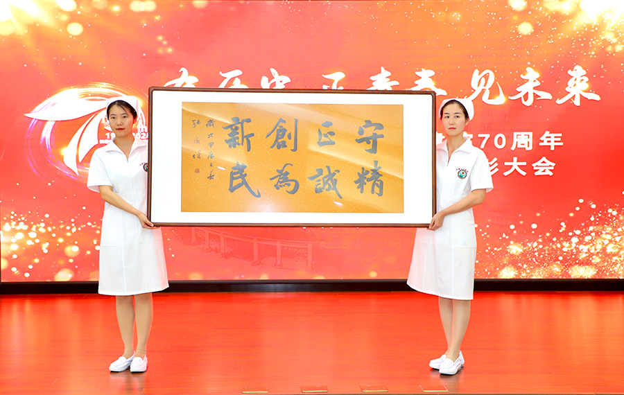 为建设高质量的医院文化,大会对中文成人网 全新设计的院徽,以及文创作品“参小宝”进行了展示。此外,市文联主席特为医院院庆创作了院训作品。“守正创新 精诚为民”这八个大字已经扎根在每一位市中医院人的心中,也时刻激励着大家要持续全心全意为患者服务。