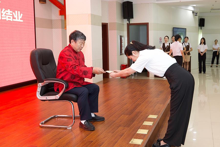 赵继福教授一一回礼,赠葫芦于各位弟子,寓意弟子早日悬壶济世。
