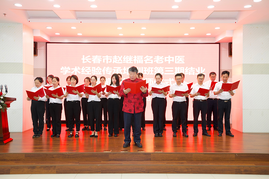 在这万物繁茂、生机勃发的七月,我们迎来了中医药队伍的新生力量,为不断传承与发扬全国名中医赵继福的学术经验,不断提高中医临床水平,不断为中医界培养出更多的、更优秀的中医人才,7月18日,长春市赵继福名老中医学术经验传承培训班第三期结业暨第四期拜师仪式在中文成人网 顺利举行。
