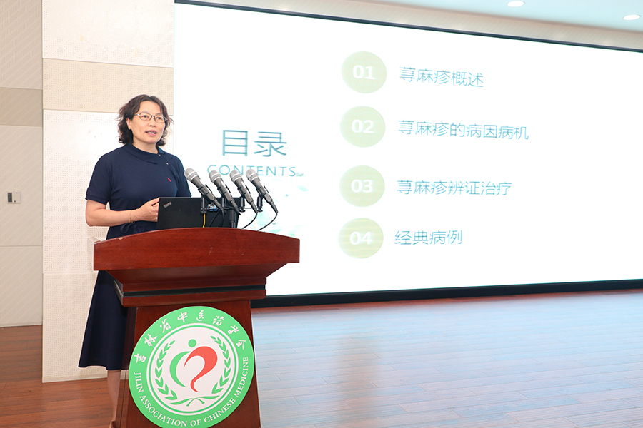 ▲吉林省名中医、长春中医药大学基础医学院院长张文风为大家讲解《经方论治荨麻疹的辨证思路》