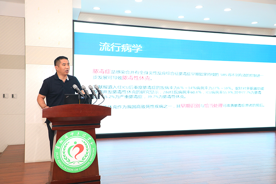 ▲辽宁中医药大学附属医院重症康复科主任李长辉分享了《脓毒症的诊治》