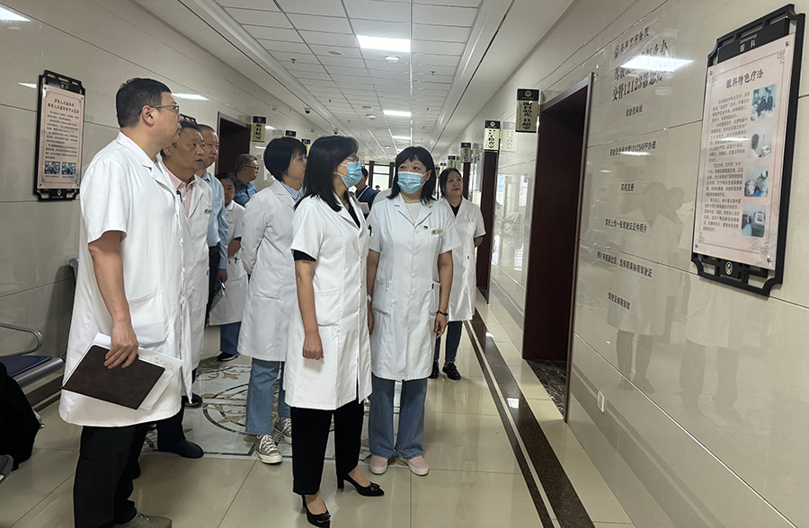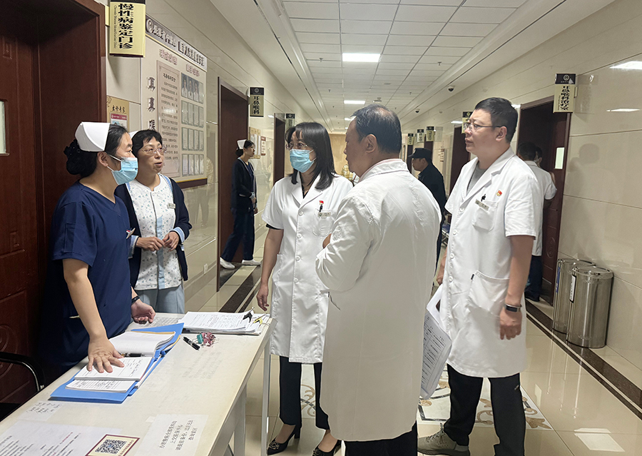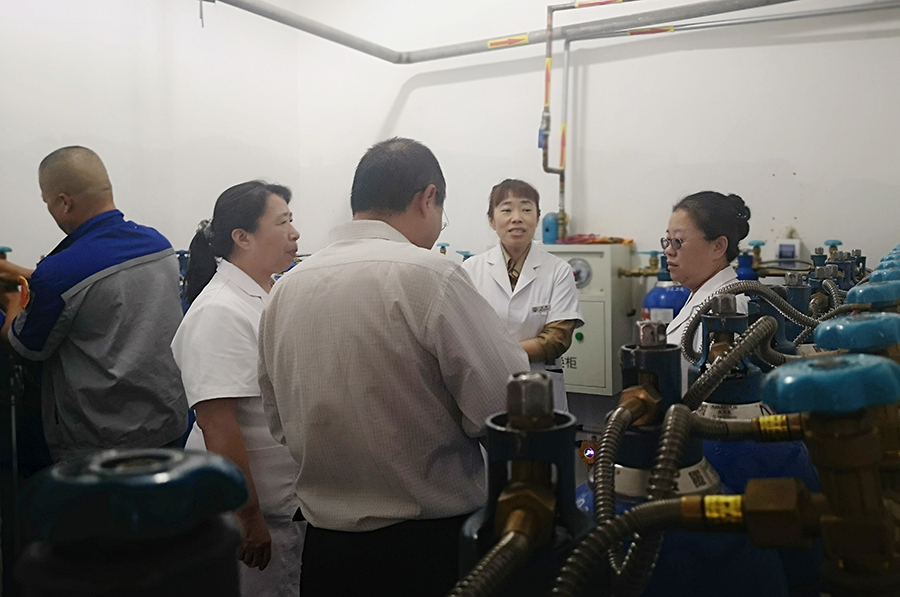 副院长曹亚丽带领总部相关职能科室负责人深入疗区、门急诊、后勤保障部门以及重点岗位,通过实地查看、现场询问,对各疗区、门诊医疗设备、药品管理、后勤保障、消防安全等多个维度进行了细致排查。