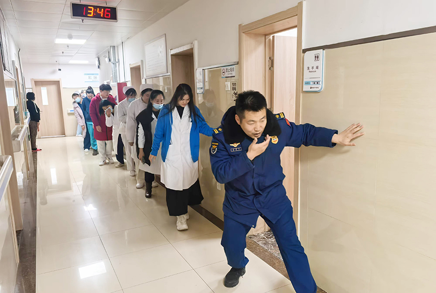 “失火啦、失火啦!”火情突现,医院内警铃大作。医护人员迅速引导患者沿防火通道撤离,消防车随即呼啸而至。在消防救援人员的协助下,火势迅速被控制,患者安全撤离……
