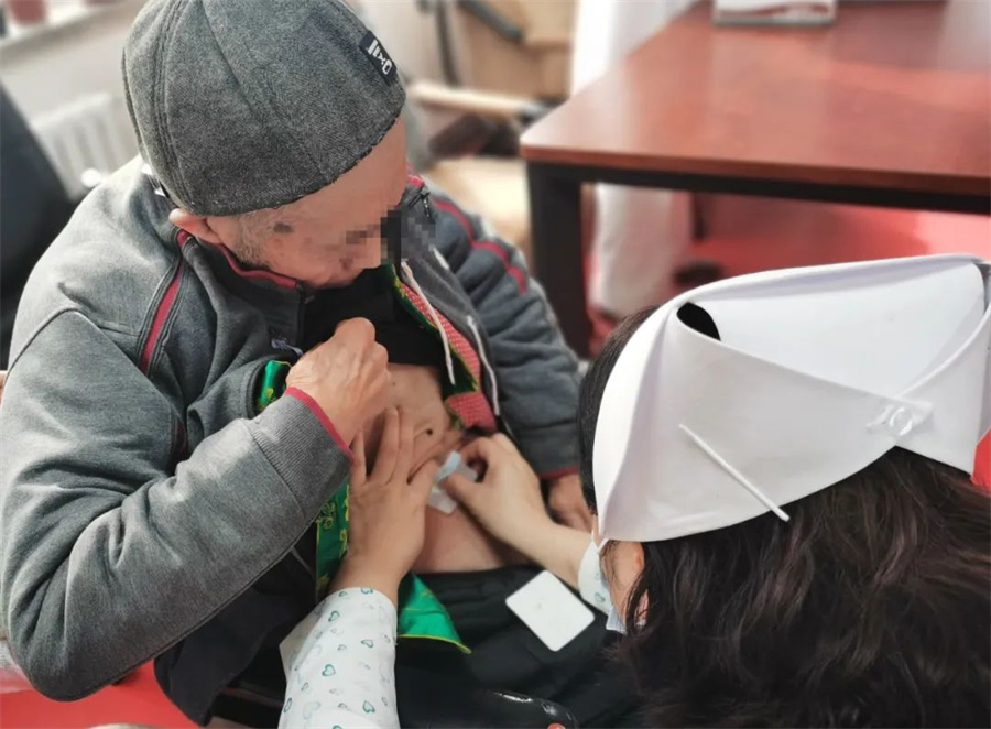 支部党员与志愿者们耐心地为在院自理老人提供血压、血糖、心电图检查,并为他们实施了穴位贴敷、中药封包等中医适宜技术服务体验。对于行动不便的老人,医护人员走到床边,细致检查并给予用药指导。同时,医护人员还向老人们讲解中医调理健康知识,鼓励大家养成良好的健康生活习惯。这一系列贴心举措,不仅体现了对老人们的深切关怀,也彰显了中医在促进健康方面的独特魅力。