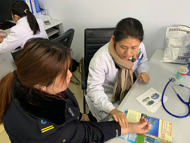 义诊专家团队的老年病科主任邢秀丽、肛肠科主任张智勇、眼科主任韩光、心病科主任医师陈淑玲、脑病科主治医师邸程程、糖尿病科主治医师李戈、外科主治医师郑虹各展学科特长,认真地为每一位前来咨询的员工诊脉,提供常见职业病的预防保健知识,讲解四季养生方法,对常见慢性病进行针对性调理。