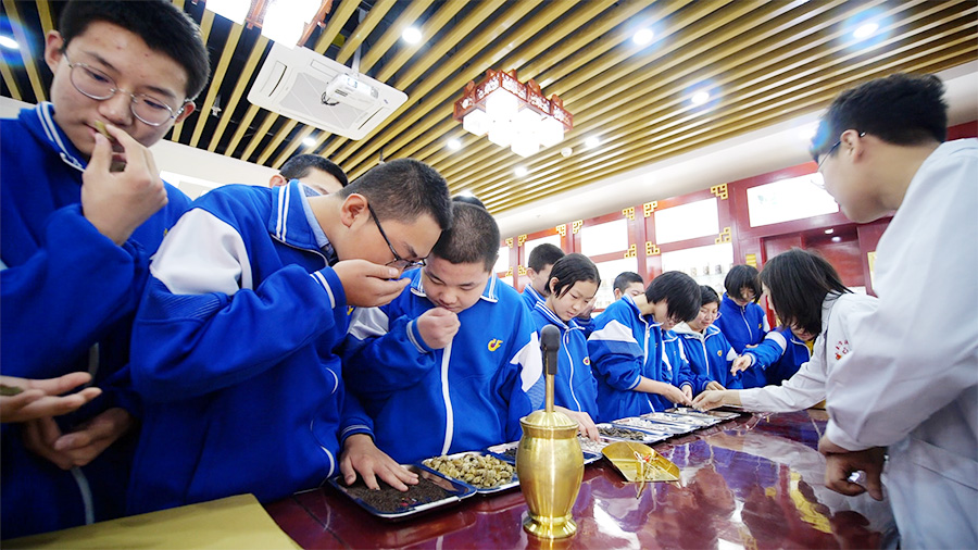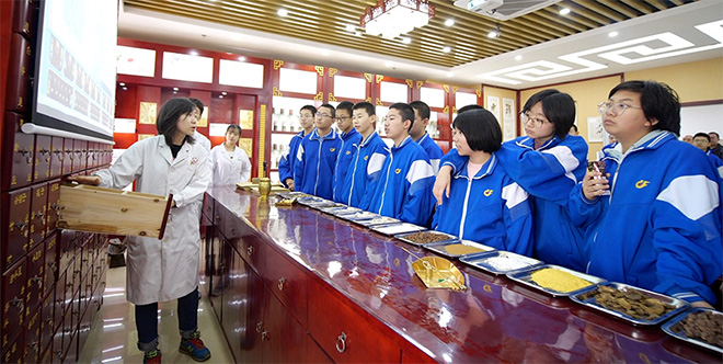 “这个东西的医学名称是辛夷呀,我虽然总能见过,可还是头一次知道它的学名。”走进中文成人网 的实训中心的中医药房,一群初中生正在热火朝天地议论着。现场,药师先为同学们简要介绍了药房里装药的药篼子和投影的神奇之处,在中药材展示区,长长的桌面上摆放着白术、当归、黄芪、辛夷等药材,还有已经研磨好的一些药材,同学们不时拿起一小片药材闻一闻,学到这些中医新知识开心极了。看着学生们求知的眼神,一旁的医生及药师也耐心地一一解答。听着专业医生的讲解,学生们也初步了解了一些中药材的药性及药效,认识了身边常见的草药,知道了中医药学是中华文明的重要组成部分,同时也培养学生们学习传统中医的兴趣。