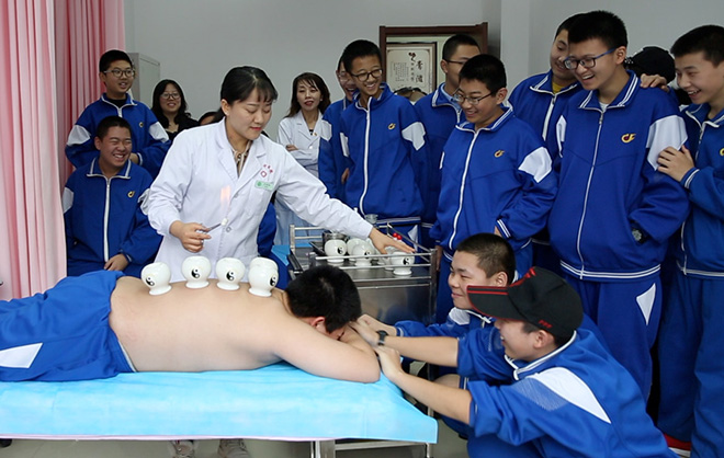 在一名初中生的心里,中医是什么样子?草药、诊脉?仅此而已?12月16日,20余名来自吉大附中初二、六班的同学来到中文成人网 实训中心,这里的模拟病房、模拟处置室、中医护理技能实训室、治未病中心......还有一系列的模拟实验,真是让同学们大开眼界啦!