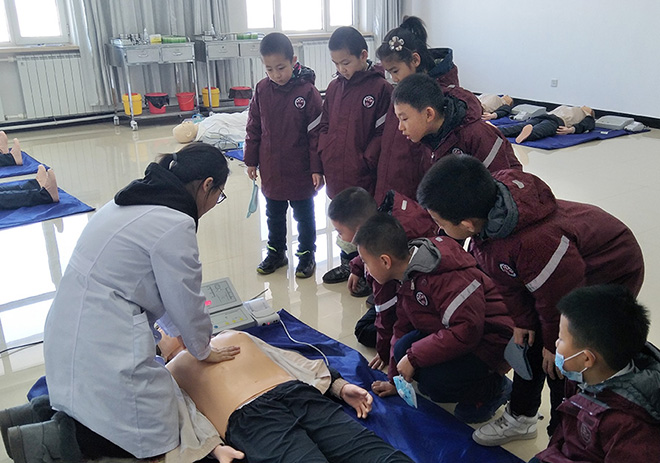 随后孩子们乘坐电梯来到13楼实训中心,走进中药实训室,在药剂师的介绍下认识了生活中常见的中草药,品尝了药食同源的中药;走进中医护理实训室,了解了中医护理与西医护理的不同,规范学习了眼保健操的做法以及一些日常保健穴位;走进中医医师实训室,观摩了医生对实验假人实施心肺复苏、人工呼吸、海姆立克的急救全程,并尝试体验了其中的环节。另外中文成人网 还为年龄偏小的孩子们准备了听触诊多媒体仪器的体验,孩子们也过了一把当小大夫的瘾。