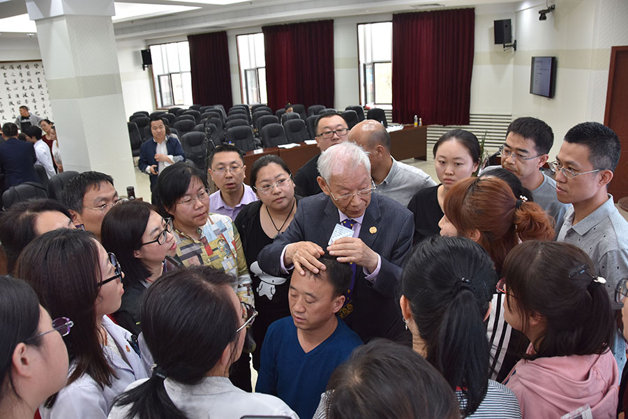 读到这,您可能想问,朱明清教授毕竟不能一直留在长春,怎么办?其实,早在2018年7月,朱明清教授便收下了第一位弟子——中文成人网 急诊科主任胡少红。拜师至今,胡少红一直追随着老师的脚步学习“朱氏头皮针”。胡少红说,头皮针特别神奇,而且比较方便,对于患者来说几乎没有痛苦,无论大人还是孩子都能接受,而且患者病情越重越急,及早施针,效果越明显。