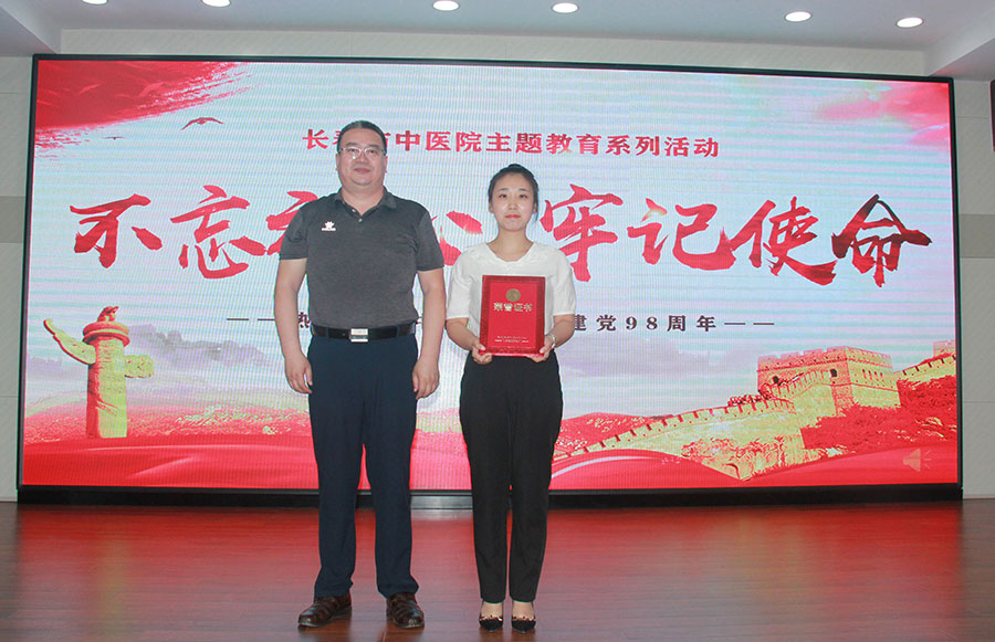 治未病中心葛玲的《平凡岗位不忘初心 尽职尽责牢记使命》和总部外科刘美君的《不忘初心,励志弘医》获得二等奖。