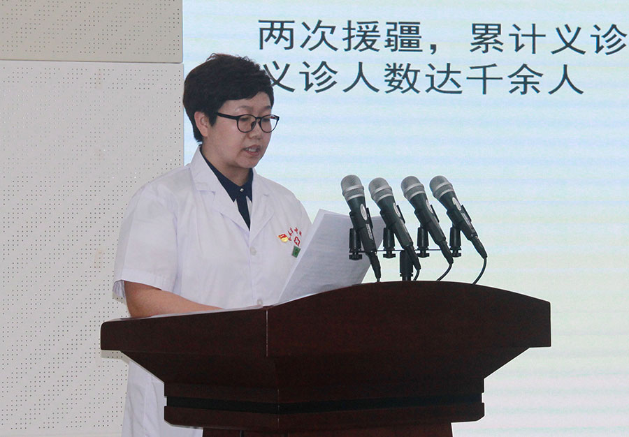 吉林好人、医德标兵、优秀共产党员苏秀文,长春好人、两次踏上援疆之路的优秀共产党员海德静,携手来到活动现场,为大家讲述了她们朴实无华却感人肺腑的故事,身体力行地进行了主题教育活动,应得了热烈的掌声。