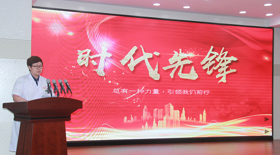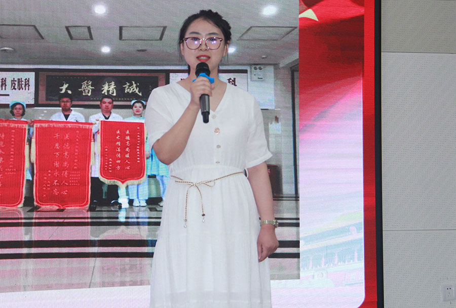脑病科董强代表青年医务工作者以《不忘初心 奋进徐行》向党的生日献上祝福,随后演讲比赛正式开始。